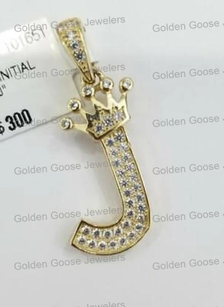 Yellow Gold Crown Initial Alphabet Letter J Pendant Charm King Free Box Chain Ebay